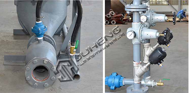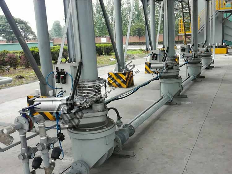 AV泵、密相泵安裝了壓力密封的圓頂閥,該閥門可以穿過靜止的料柱實(shí)現(xiàn)關(guān)閉。AV泵、密相泵采用底部出料管,系統(tǒng)安裝在AV泵、密相泵輸送系統(tǒng)單元中AV泵、密相泵的安裝底座上。多個給料點(diǎn)串聯(lián)為一根輸送管道,所有AV泵、密相泵同步進(jìn)料。來自一個或多個灰斗料位計(jì)的信號,將啟動AV泵、密相泵系統(tǒng)開始輸送循環(huán)。